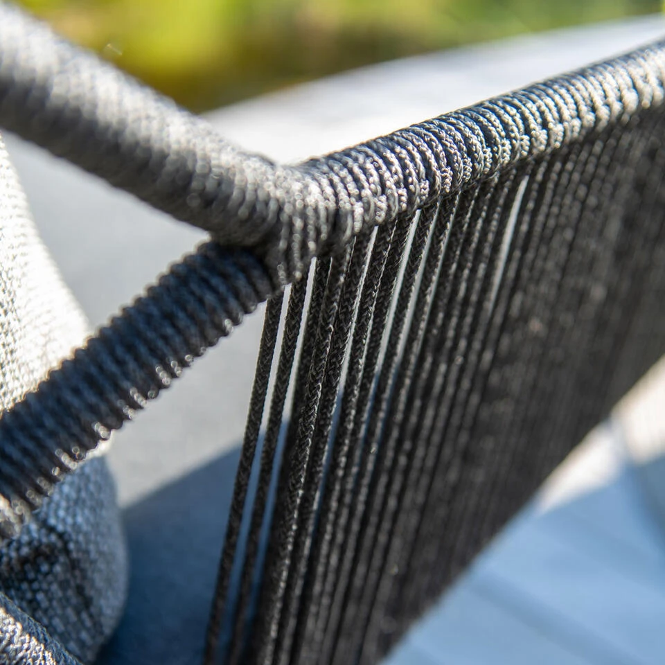 De Accor tuinstoel heeft een prachtig strak design. Het gebruik van rope is de nieuwste trend op het gebied van tuinmeubelen. De Accor tuinstoel heeft een Scandinavische uitstraling en is goed te combineren met verschillende soorten materialen. De Accor tuinstoel is gemaakt van een roestvrij stalen frame met donkergrijze poedercoating. Om het frame zit touw geknoopt voor een echt eigentijds design. Het touw is zeer sterk en heeft een grote trekkracht. Uiteraard wordt de Accor tuin fauteuil inclusief zit- en rugkussens geleverd. De tuinstoel heeft comfortabele kussens. De kussens zijn gemaakt van de speciale outdoor stof Olefin. Dit maakt de kussens weersbestendig en zeer duurzaam. De kussens kunnen gewoon gedurende het gehele zomerseizoen buiten blijven liggen. Mochten de kussens vies worden dan zijn de hoezen gemakkelijk te wassen door de handige ritsen. De tuinstoel heeft de volgende afmetingen: B64 x D 62 x H 83. Wil je niet alleen de Accor tuinstoel, maar graag een complete set? Bij de Accor serie is dit mogelijk. De serie bestaat onder andere uit een tuinbank en diverse tuinstoelen met voetenbank. Wil je persoonlijk advies, een eigen tuin combinatie samenstellen en komen proefzitten?