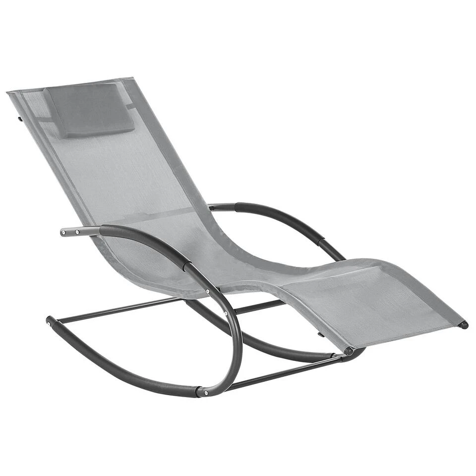 Exclusieve, lichtgrijze ligbed om in te schommelen. Dit ligbed onderscheidt zich door zijn eigentijdse ontwerp en is een prachtige aanvulling op elke tuin, balkon of terras. De zitting, gemaakt van een duurzame stof, heeft een gewatteerde hoofdsteun die extra comfort biedt. De tuinligstoel is gemaakt met stalen geleiders voor een soepele en ontspannende schommelbeweging.