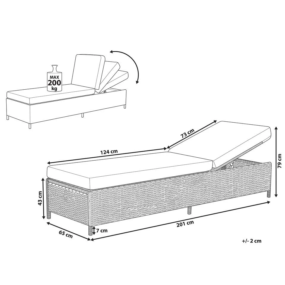 Elegante ligbed met wickerlook. Deze ligstoel is gemaakt van milieuvriendelijk, hoogwaardig polyrotan. Het frame is gemaakt van uitzonderlijk stevig gepoedercoat staal voor volledige veiligheid. De zonnestoel wordt geleverd met een dik kussen dat vocht- en vlekbestendig is, onderhoudsvriendelijk en ontworpen om perfect te passen. Bovendien is de kussenhoes afneembaar en machinewasbaar. De verstelbare rugleuning maakt de keuze uit 5 verschillende standen mogelijk. Lees een boek, doe een dutje en geniet comfortabel van het buitenleven.