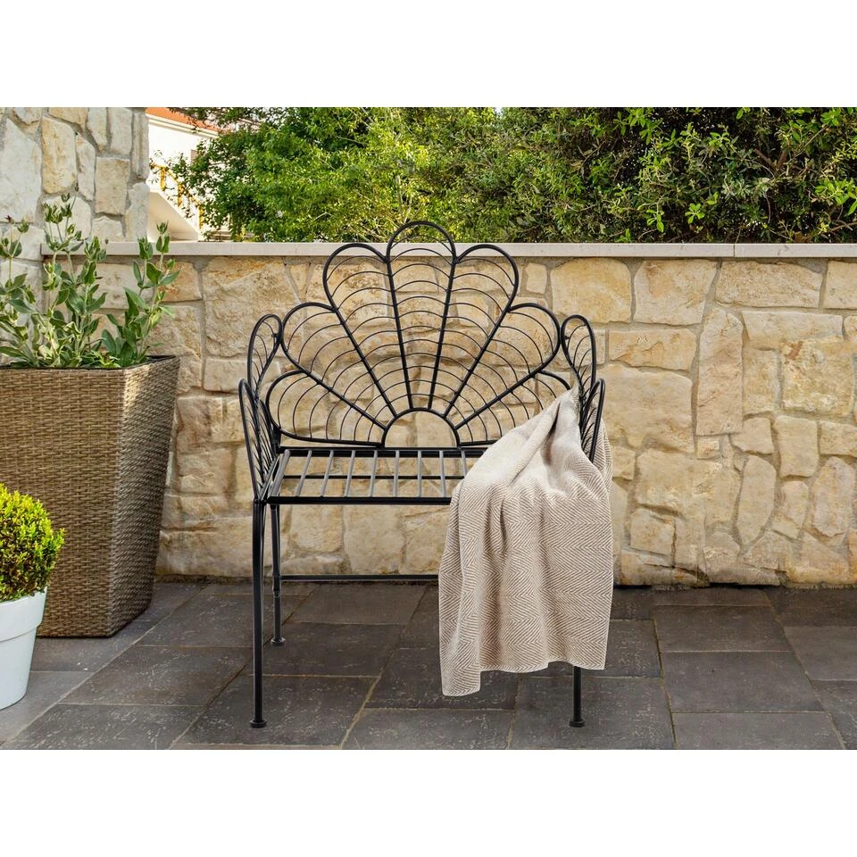 Retro metalen accentstoel. Deze prachtige accentstoel zal je buitenruimte nog stijlvoller maken. De vorm is geïnspireerd door retro ontwerp, de stoel heeft ook een decoratieve rugleuning waarbij de vormen doen denken aan een bloem. De onregelmatige vorm van de armleuning en de halfronde poten maken het elegante ontwerp helemaal af. De tuinstoel is gemaakt van ijzer waardoor hij erg stevig en duurzaam is. Of je nu buiten wilt eten of gewoon lekker van de frisse lucht wil genieten, deze stoel is perfect voor wat je maar wilt.