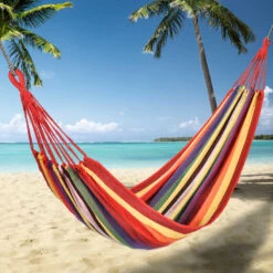 Materiaalsamenstelling hangmat: 50% katoen / 50% polyester
