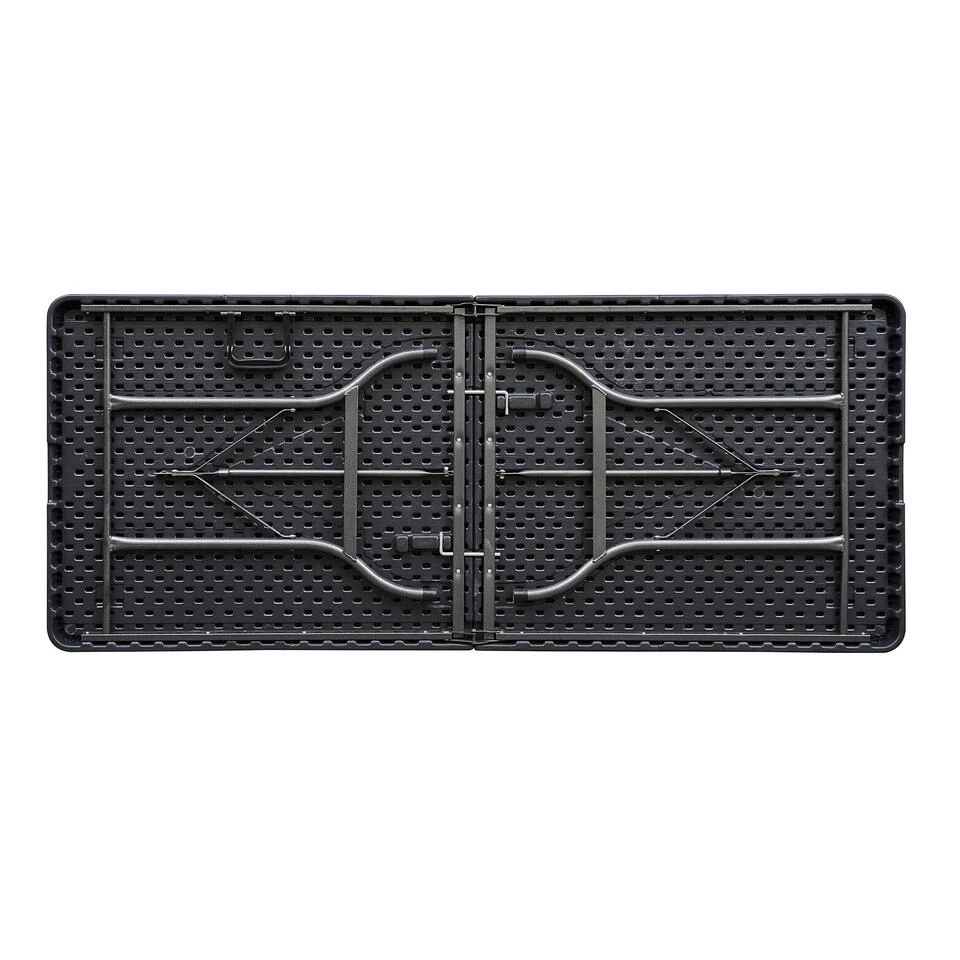 Inklapbare tafel met wicker look. Op zoek naar een vouwtafel die je zowel binnen als buiten kunt gebruiken? Deze picknicktafel zwart is ideaal voor buiten, op de camping of voor het creëren van extra (zit)ruimte op feestjes. De tafel is 180cm lang, 74cm breed en 72cm hoog. Opgeklapt is de tafel slechts 90x74x9cm en dus heel compact op te bergen. Daarnaast heeft de plooitafel een handvat zodat je hem gemakkelijk mee kunt nemen.