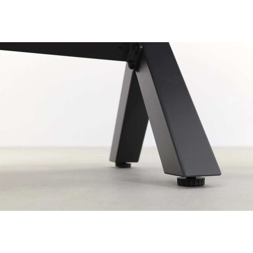 De betonlook tuintafel is volledig vervaardigd uit aluminium. Het unieke pootstel is afgewerkt met een beschermende coating zodat deze kras- en stootvast is. Doordat er gekozen is voor aluminium is de tuintafel licht in gewicht, onderhoudsarm en gaat hij jarenlang mee. Daarnaast kan dit materiaal niet verroesten. Het tafelblad is voorzien van een speciale coating in een betonlook. Deze coating zorgt ervoor dat het blad niet metaalachtig klinkt als je er op tikt. Dankzij de verstelbare dopjes onder de tafelpoten kun je de tuintafel eenvoudig afstellen zodat je geen last hebt van een wiebelende tuintafel.